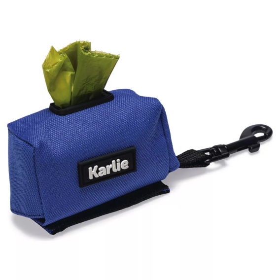 Praktyczny i kompaktowy pojemnik na woreczki na odchody, wykonany z trwałego nylonu. Dzięki rzepowi można go łatwo przymocować do smyczy, a karabińczyk umożliwia przypięcie do spodni lub D-ringu. Produkt jest dostarczany z 15 biodegradowalnymi woreczkami, których wewnętrzna rolka wykonana jest z tektury, co czyni go przyjaznym dla środowiska.