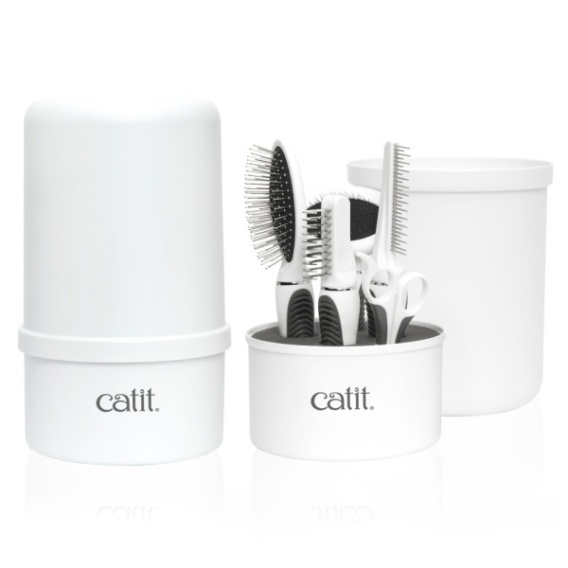 Zestaw pielęgnacyjny dla kotów długowłosych - biały, 3 elementy